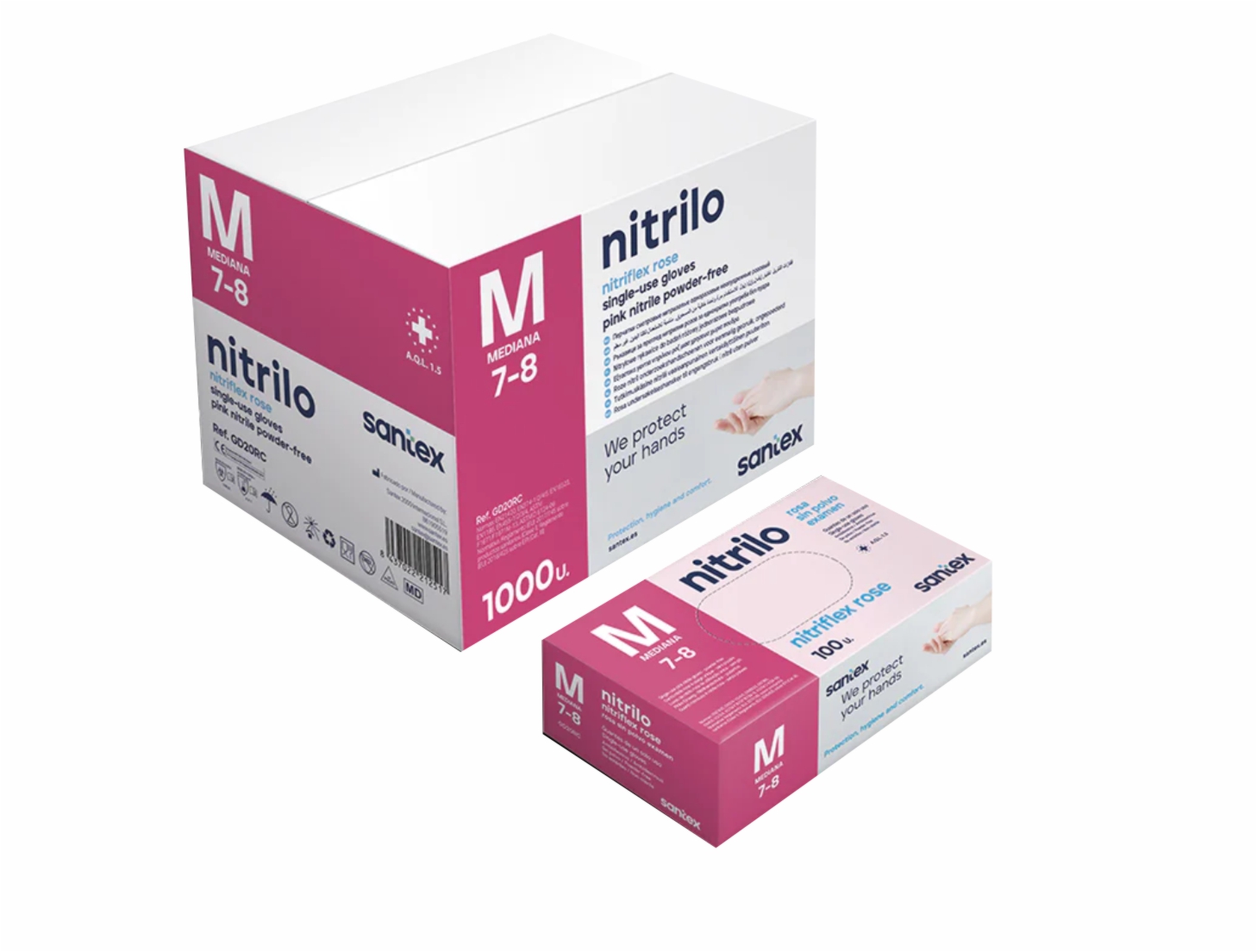 Guantes de Nitrilo sin polvo color rosa. De 3,5 g