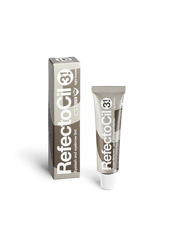 Tinte de cejas y pestañas RefectoCil 3.1 Light Brown o Marrón Claro, es un tinte de tono claro, versátil y natural. Realza el efecto brillante del cabello rubio oscuro, aclarando la mirada. Indicado para pestañas y cejas castañas claras. Se puede mezclar con cualquiera de los 8 tintes RefectoCil. Mezclado con el Marrón Natural permite crear una gran variedad de tonos castaños que se adaptan a cada persona.